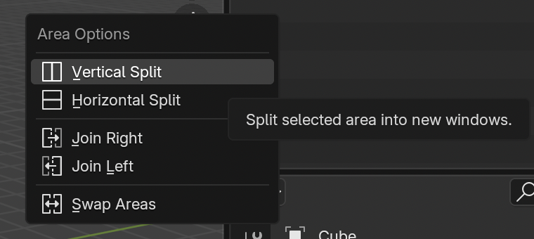 - 블렌더 인터페이스는 다음과 같은 구조로 구성된다.