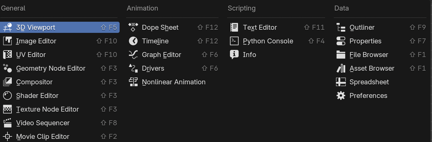 - 가장 기본적이고 많이 사용하는 에디터는 “3D Viewport”다.