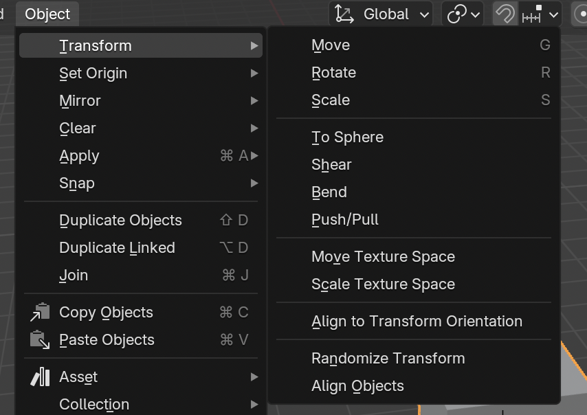- 사이드바 > Item > Transform